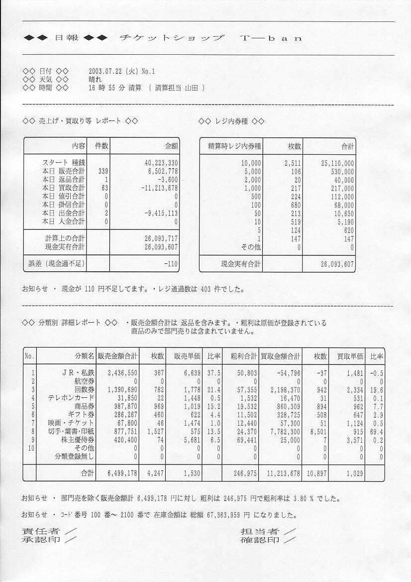 売上げレポート印刷例をご案内します。